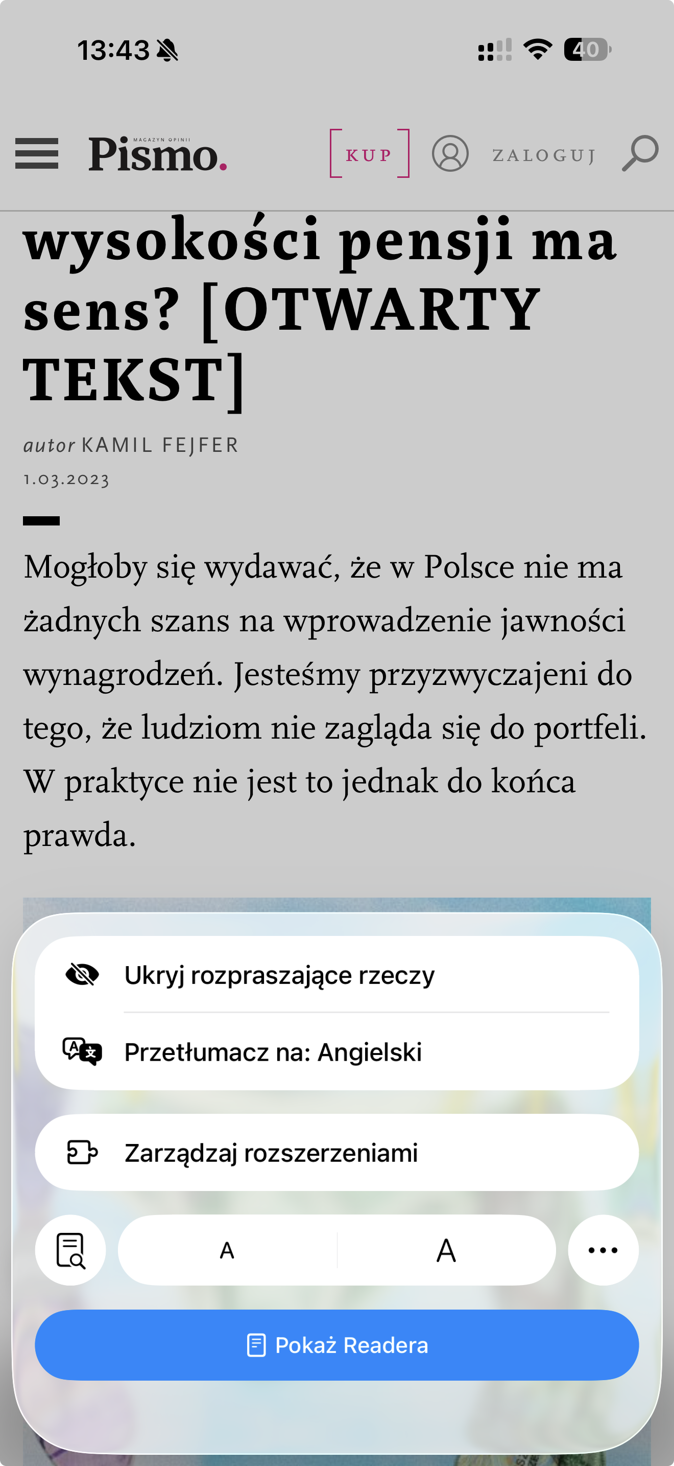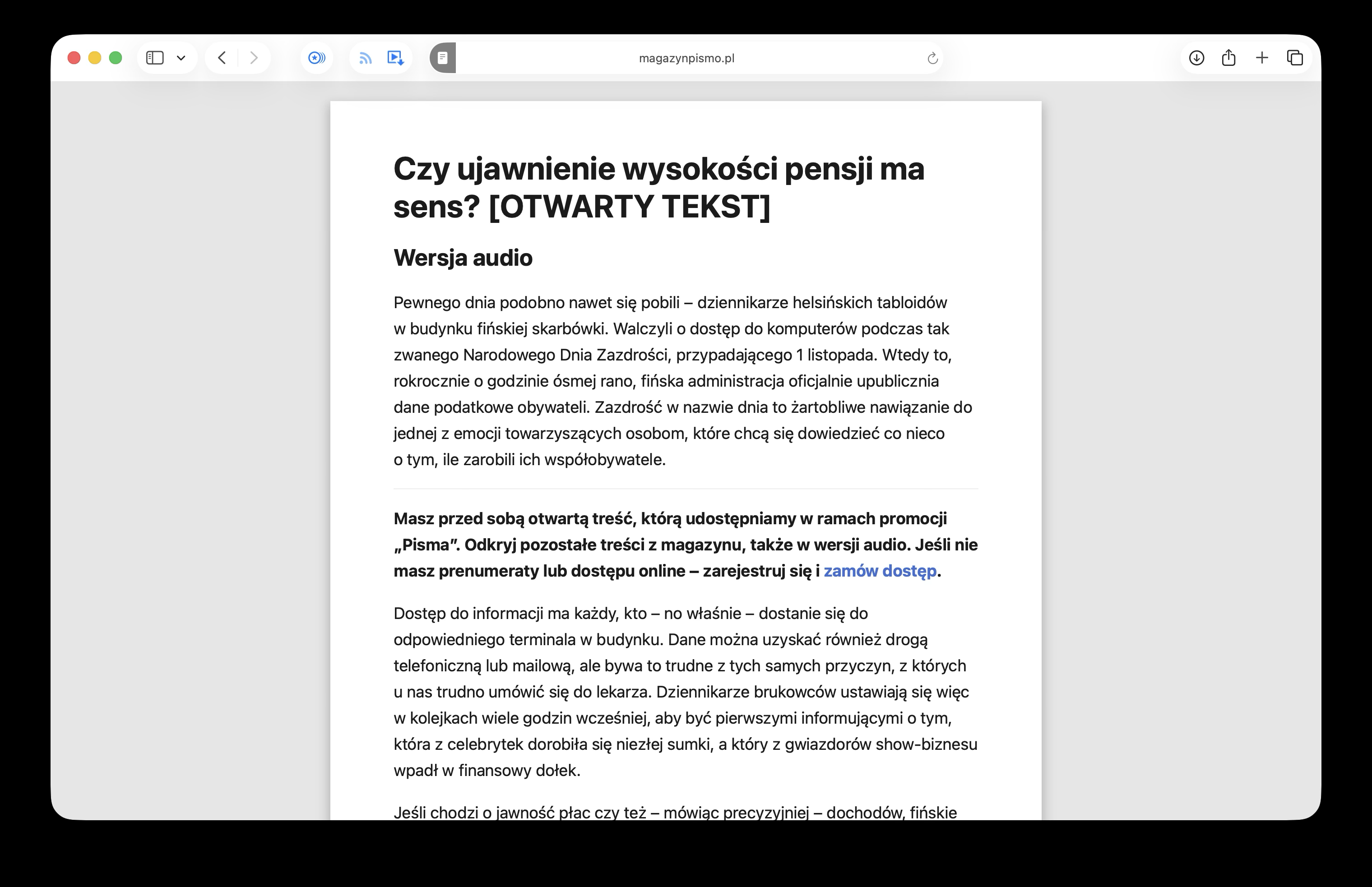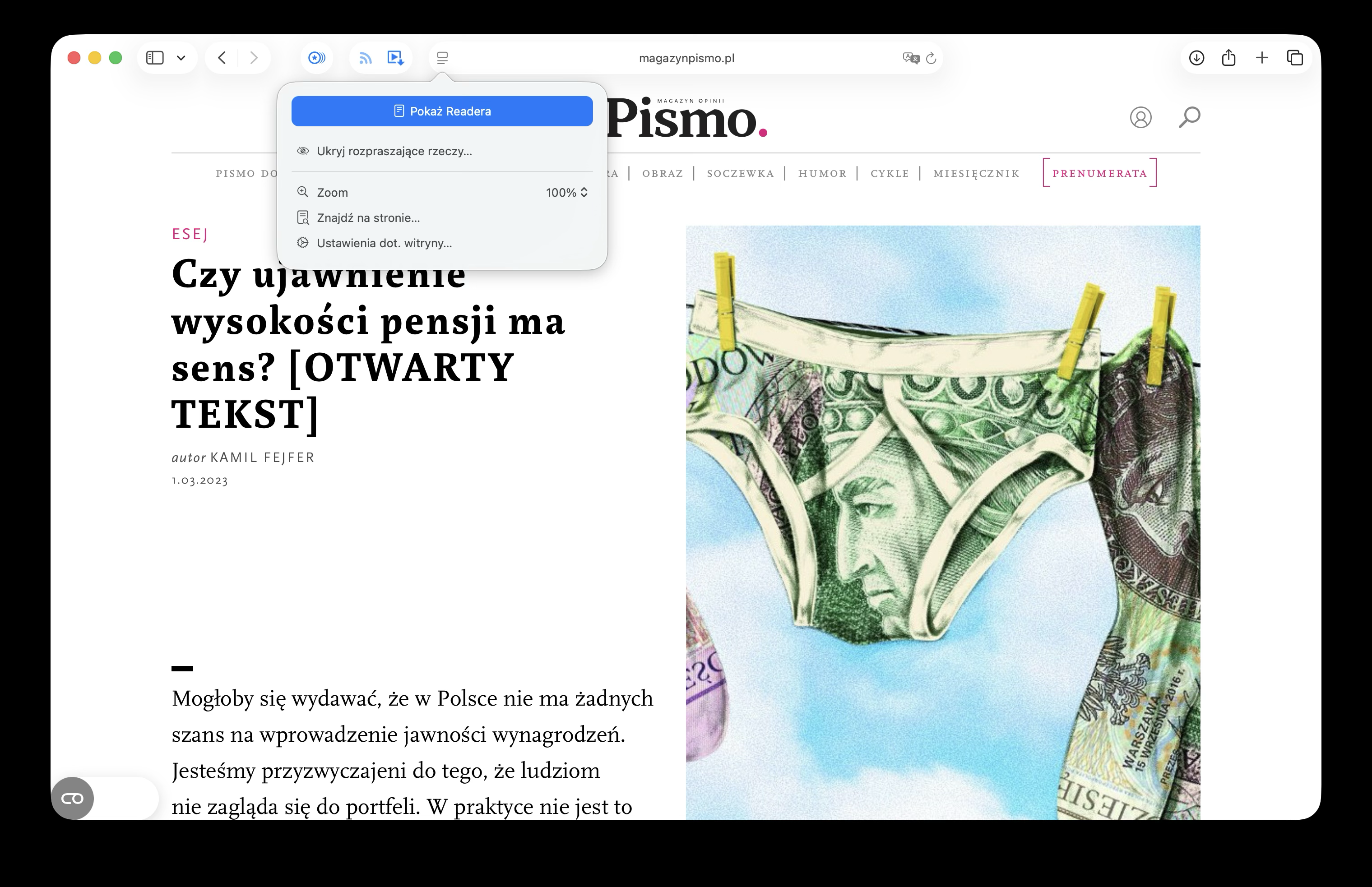 Apple dba o wygodę czytania. Safari umożliwia pokazanie tekstu/artykułu, który chcemy przeczytać bez rozpraszaczy. Funkcja nazywa się Reader.