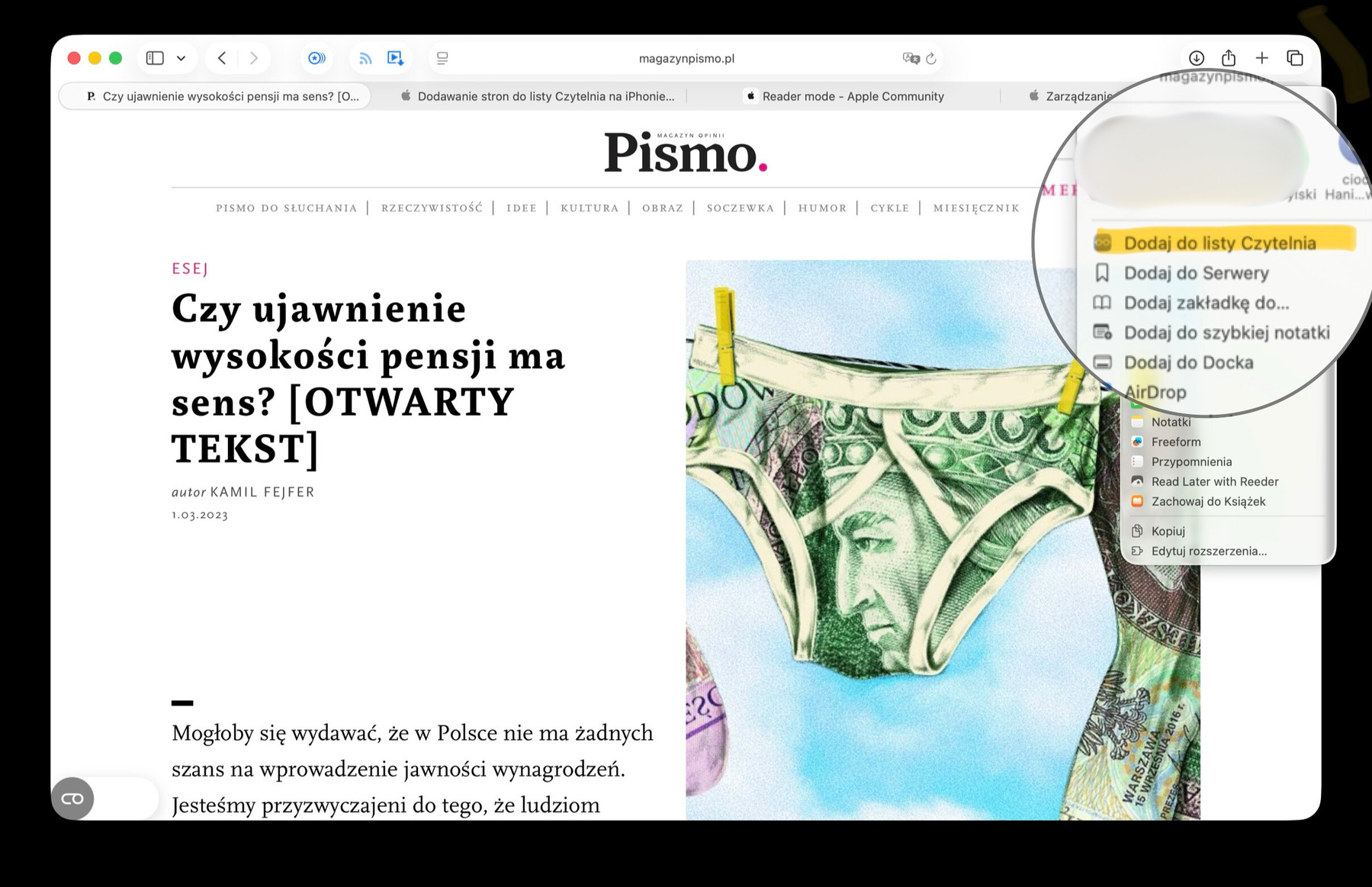 Apple daje nam narzędzia do zachowania artykułów na później, nawet offline. Mamy dwie opcje: Safari i “lista czytania” lub aplikacja Książki.